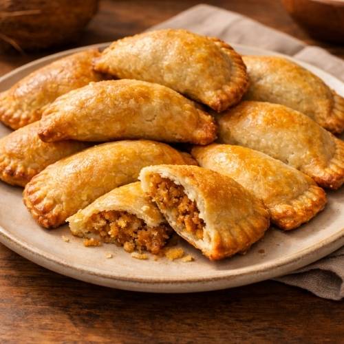 A Belizean coconut crust recipe is a hand-held pastry with sweet coconut filling. It is flaky, folded like a half-moon, and easier than tarts. Many call it a classic belize coconut crust.